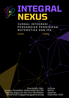 INTEGRAL-NEXUS: Jurnal Integrasi Pengabdian Pendidikan Matematika dan IPA is a scientific journal published by the Department of Mathematics Education, Faculty of Teacher Training and Education, Universitas Singaperbangsa Karawang. This journal publishes articles resulting from community service activities conducted by academics, researchers, practitioners, and students, particularly in the field of mathematics and natural sciences education and other related areas of education, science, and technology that contribute to community development.