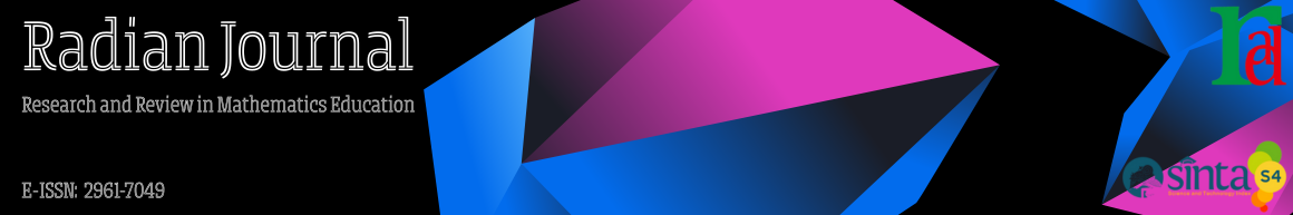 Radian Journal: Research and Review in Mathematics Education (e-ISSN: 2961-7049) is a peer-reviewed online academic journal devoted to disseminate original research (qualitative research, qualitative research, design/development research) and review papers (literature reviews, review articles, book reviews) in the field of mathematics education (teaching and learning strategy, curriculum development, mathematical hard skills & soft skills, learning environment, educational technology, and other related teaching and learning mathematics issues). Radian is an open-access journal published four issues per year (March, June, September, & December) by the Mathematics Education Department, Faculty of Teacher Training and Education, Universitas Singaperbangsa Karawang, West Java, Indonesia.